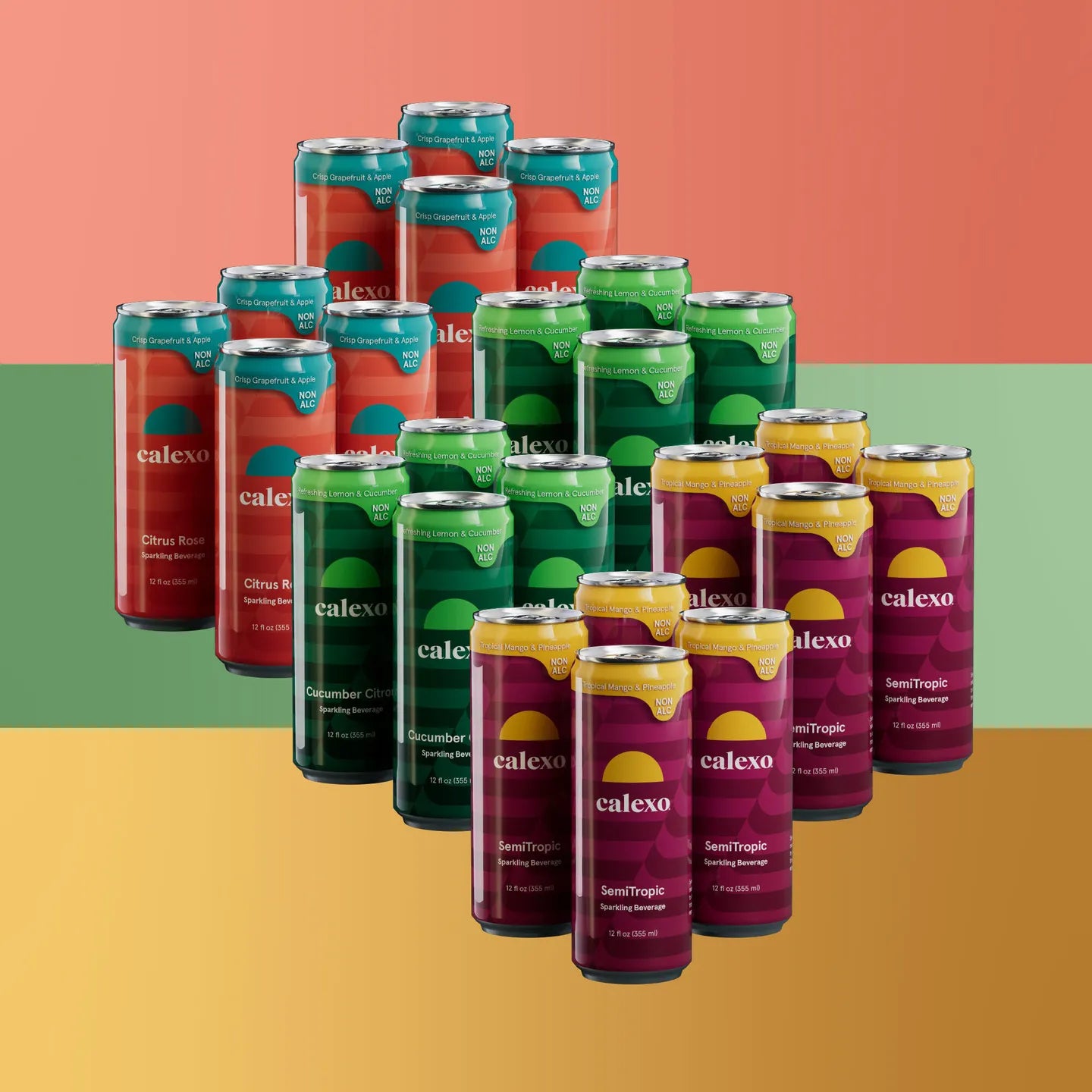 プレミアムノンアルカクテルCALEXO「キューカンバーシトロン」、「シトラスローズ」、「セミトロピック」の各フレイバーが揃ったアソートセットです。
